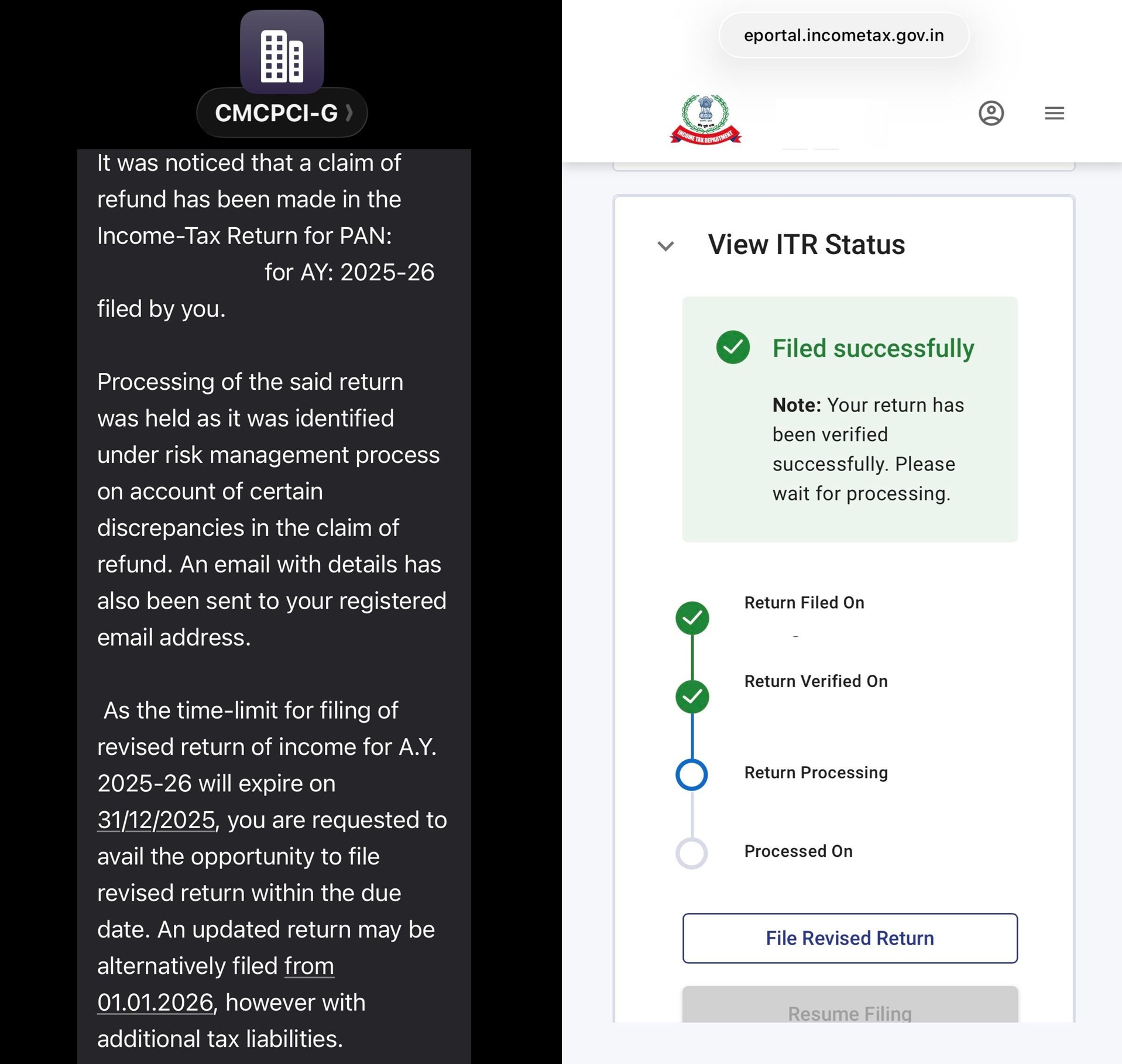 Should you revise your income-tax return by 31st December 2025 after receiving the Processing of the said return was held SMS?